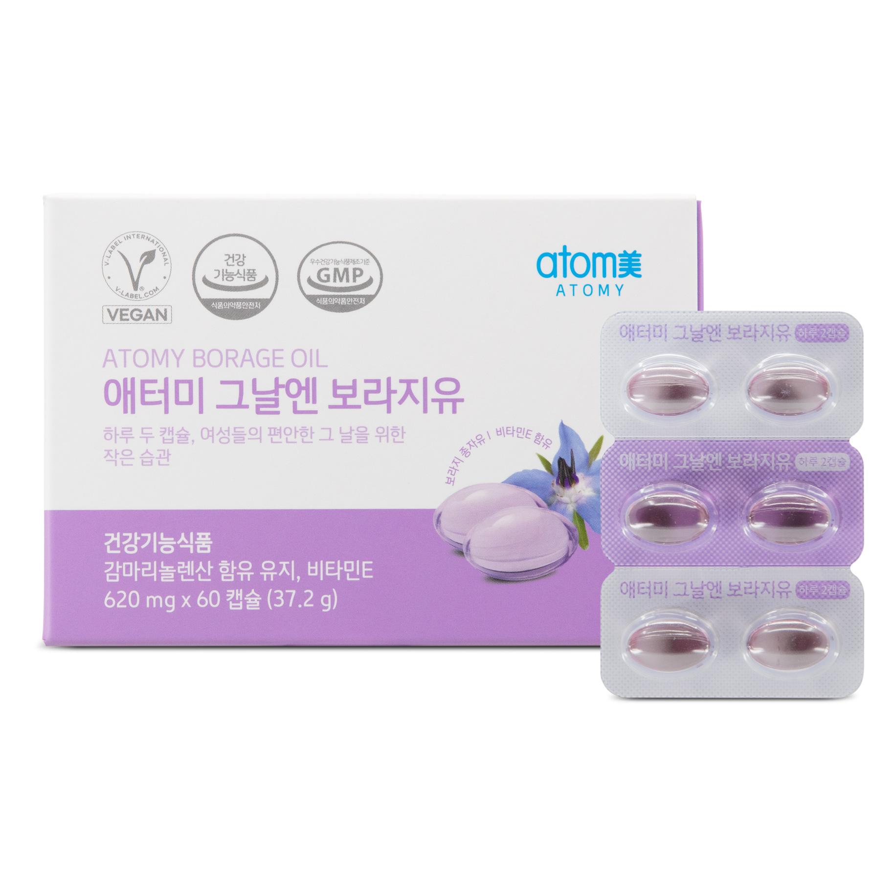 Наслаждайтесь днём с маслом Бораго от Атоми. Четырехкратное функциональное масло семян бораго для женщин, которое устраняет дискомфорт, вызванный предменструальными изменениями, снижает уровень холестерина в крови, улучшает кровообращение и состояние кожи. Изготовлен из растительных ингредиентов. Имеет маленькую капсулу, которую легко глотать.