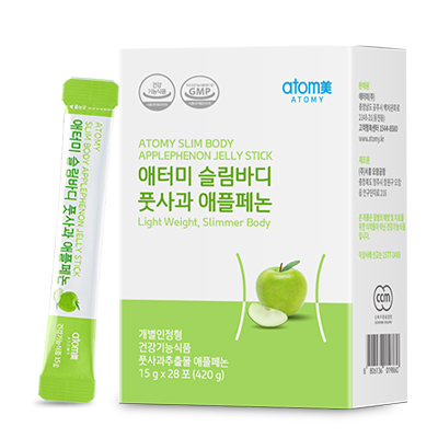 «Atomy Slim Body Green Apple Phenon» – Диетическое желе, которым можно наслаждаться в любое время и в любом месте. Это продукт с экологически чистыми вспомогательными компонентами. Одобренный Министерством безопасности пищевых продуктов и лекарств Кореи, диетический материал, который может помочь уменьшить жировые отложения. Международный стандарт качества GMP, подтверждающий оптимальный уровень надежности и качества производимой продукции к системе пищевой безопасности